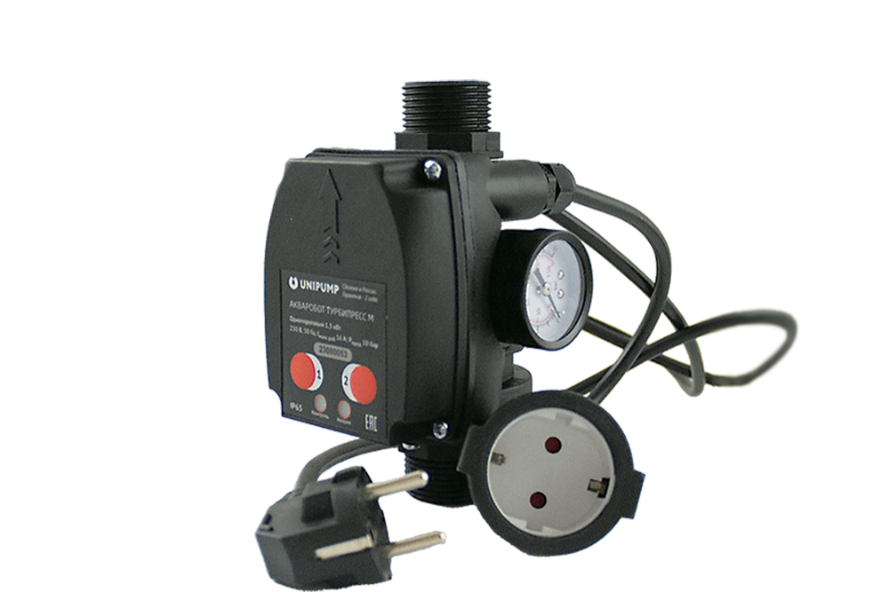 Блок автоматического управления насосом "АКВАРОБОТ ТУРБИПРЕСС М"разработан для автоматического управления однофазными поверхностными и погружными насосами с мощностью до 1,5 кВт, в зависимости от потока жидкости и минимального давления Pмин. Он предназначен для использования в системах автономного водоснабжения и повышения давления.